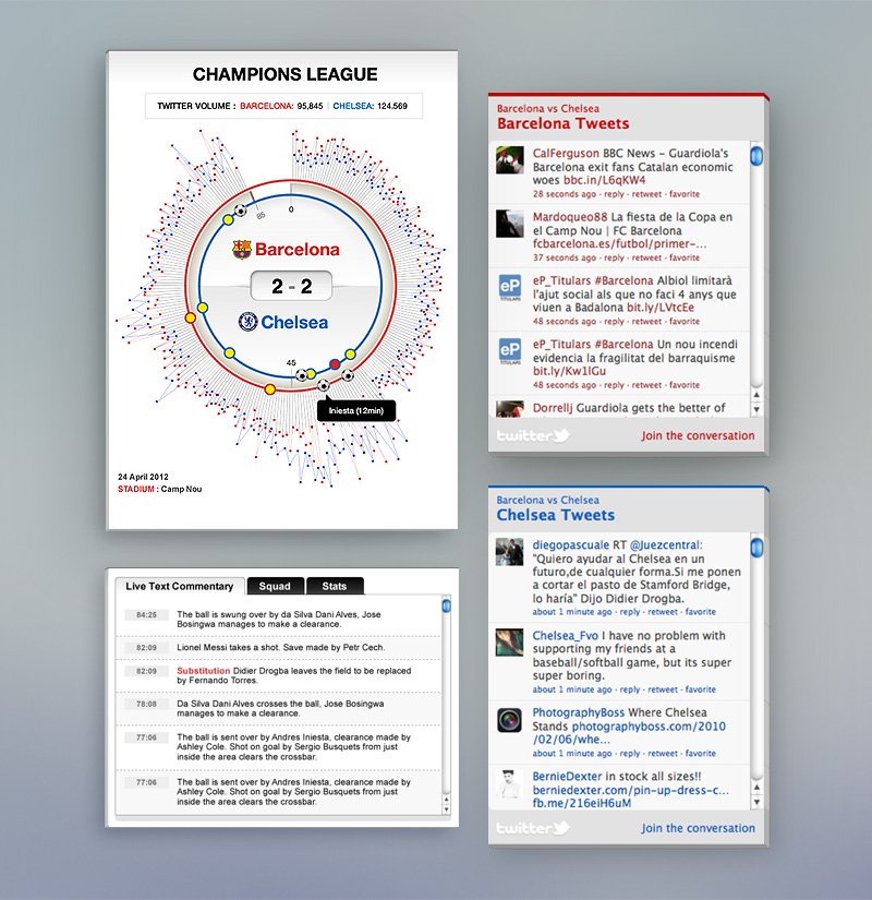 UI widget conceptual design and data visualization of a football match in real time.