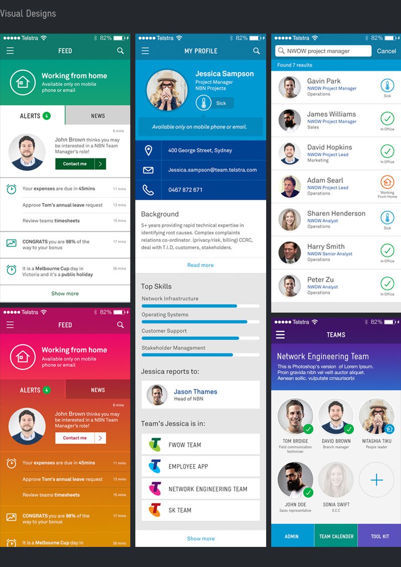 High-level designs for internal Telstra employee app.
